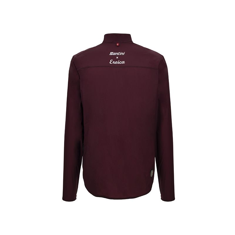 An incredibly compact Eroica windbreaker for use on and off the bike. Sometimes it’s hard to tell what the weather will be like and it’s no fun to carry around a heavy jacket. That’s why this ultra-light garment is perfect.You can fold it up into a pouch, stash it in a pocket and bring it wherever you go. Featuring a more relaxed fit and reflective logo on the back for better visibility in the dark.