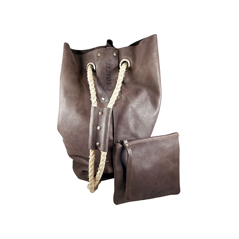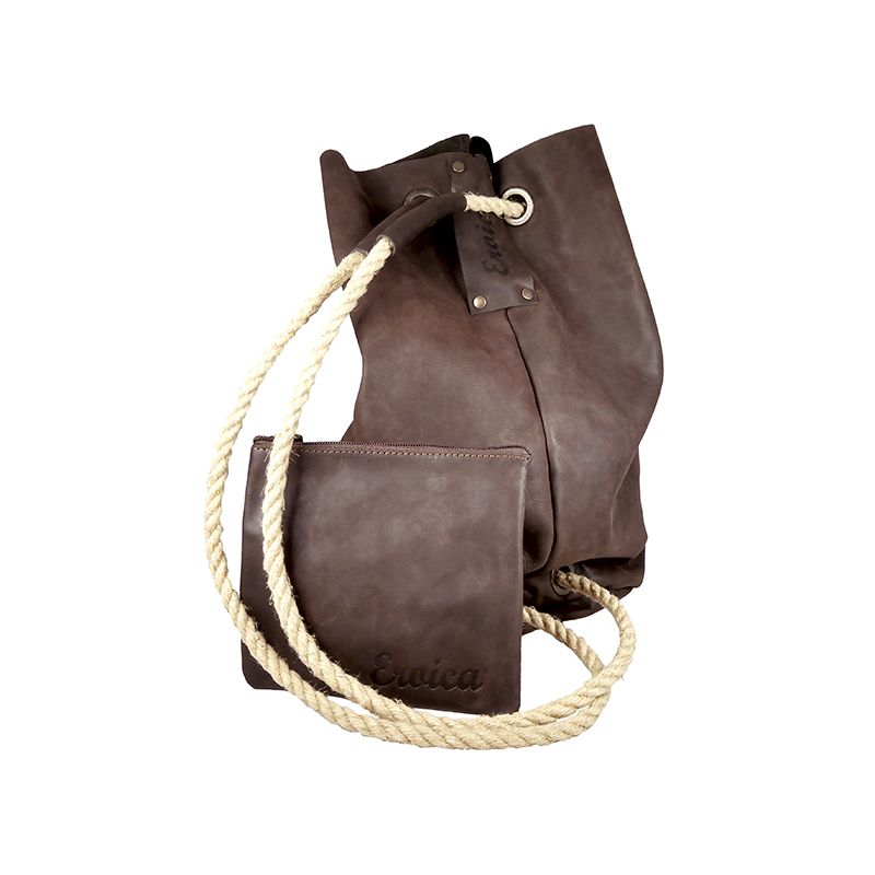 Bellissima sacca Lifestyle h 40 cm, chiusura a scorrimento con corda grezza e maniglia borchiata scorrevole, pochette cm 17×16 con cerniera inclusa. Sia la Sacca che la Pochette hanno impresso il marchio Eroica; entrambe sono Made in Tuscany