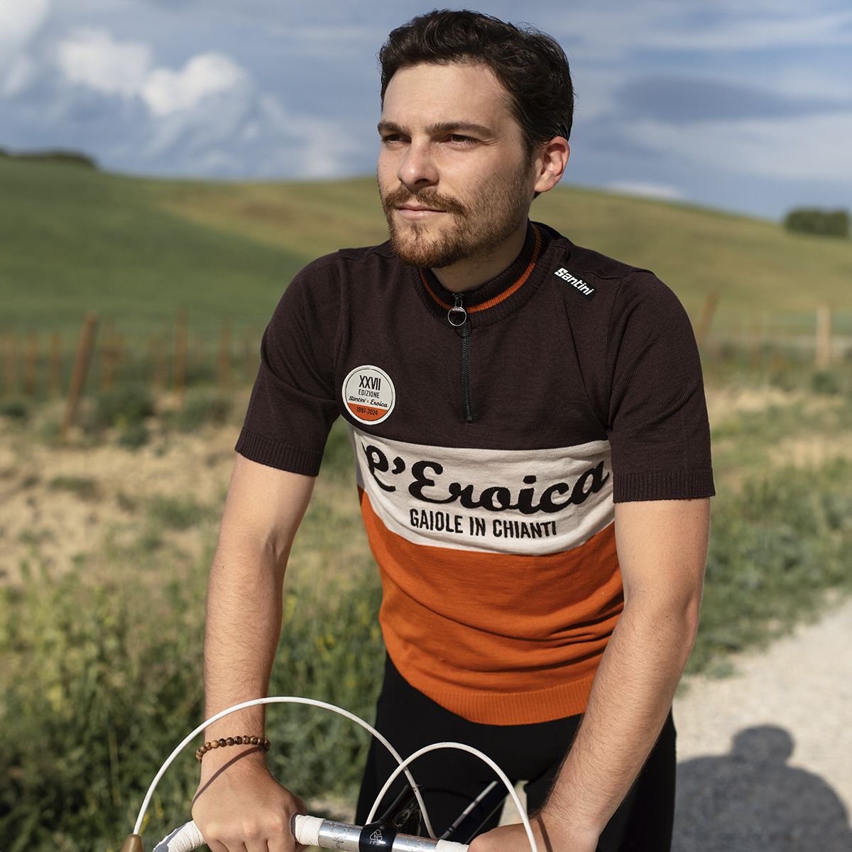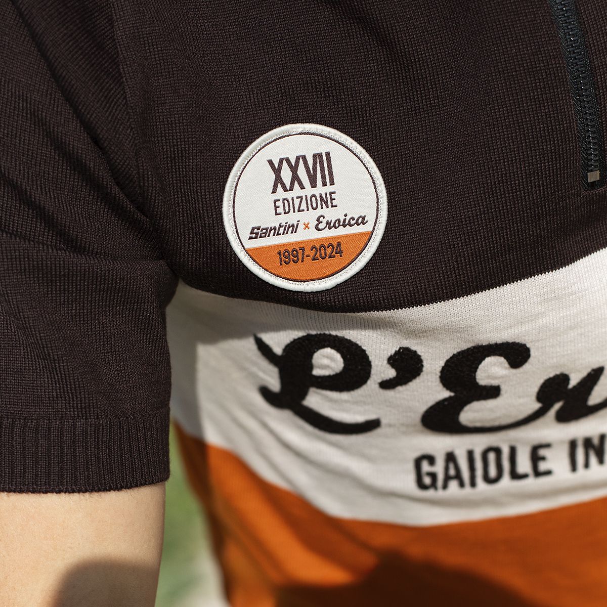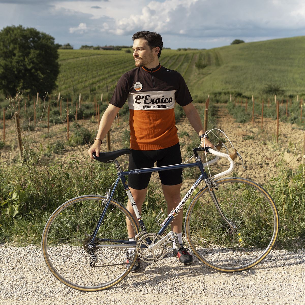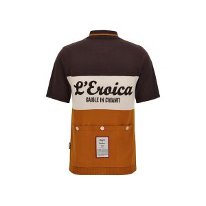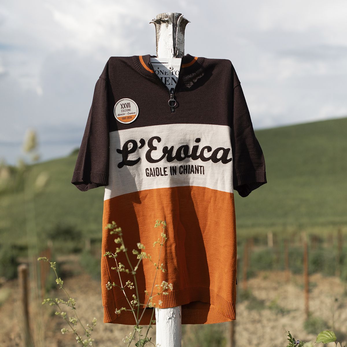 La scelta del colore di questa maglia è un omaggio alla straordinaria bellezza delle colline del Chianti, con Gaiole in Chianti come simbolo indiscusso dell’Eroica. Questo piccolo comune, con circa 3000 abitanti, è il luogo dove tutto è iniziato. La maglia, realizzata con cura in pregiata lana e splendidamente ricamata con il logo originale “Eroica” sia sul davanti che sul retro, presenta dettagli autentici come i bottoni in madreperla sulle tasche posteriori e la zip in metallo sul davanti, rendendo questo capo un tributo autentico all’origine della nostra passione ciclistica. L’etichetta “Eroica Approved” all’interno del colletto garantisce l’originalità del capo e la sua approvazione in ogni gara della serie Eroica.