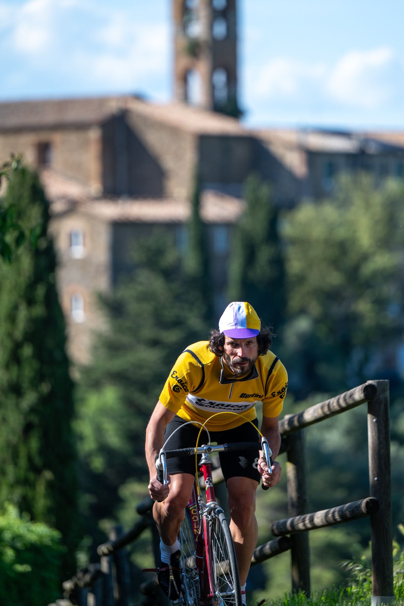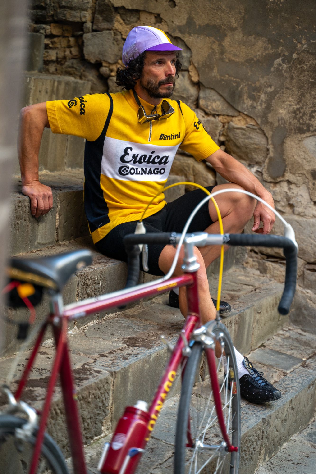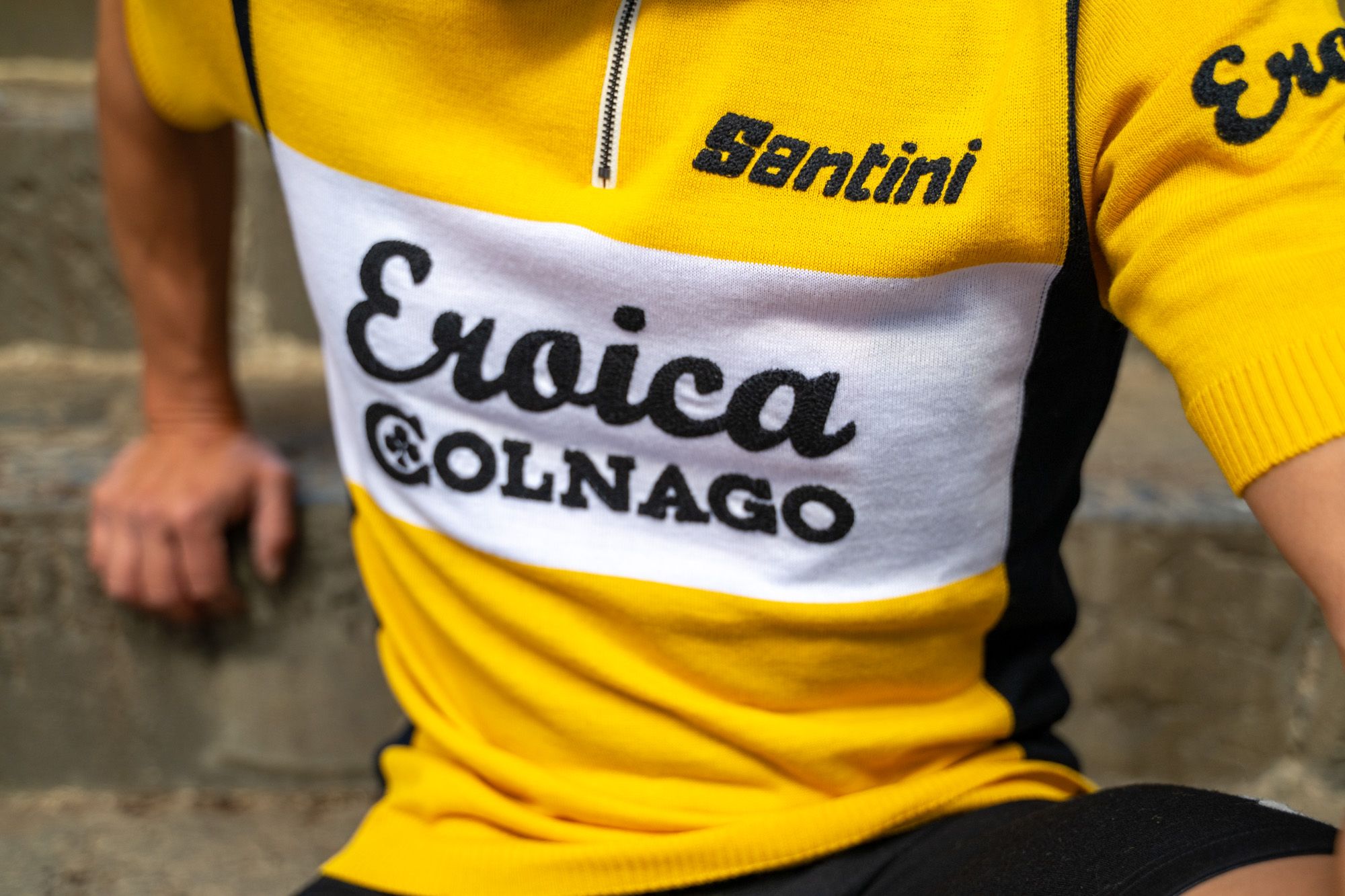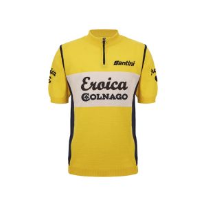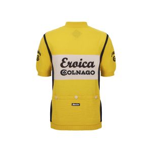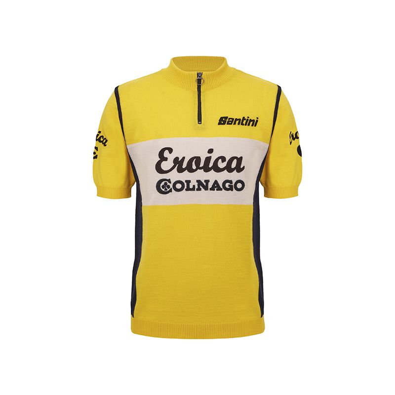 Un’icona di stile che celebra l’eleganza senza tempo del ciclismo d’epoca. La maglia Colnago, in un raffinato giallo, è un capolavoro di autenticità e artigianalità, realizzata in pregiata lana per offrire comfort e classe. Con il logo originale “Eroica” e la scritta “Colnago”, ricamati con cura sul fronte e sul retro, questa maglia rende omaggio alla tradizione, evocando lo spirito e l’estetica della storica maglia del team Del Tongo-Colnago degli anni ’80.