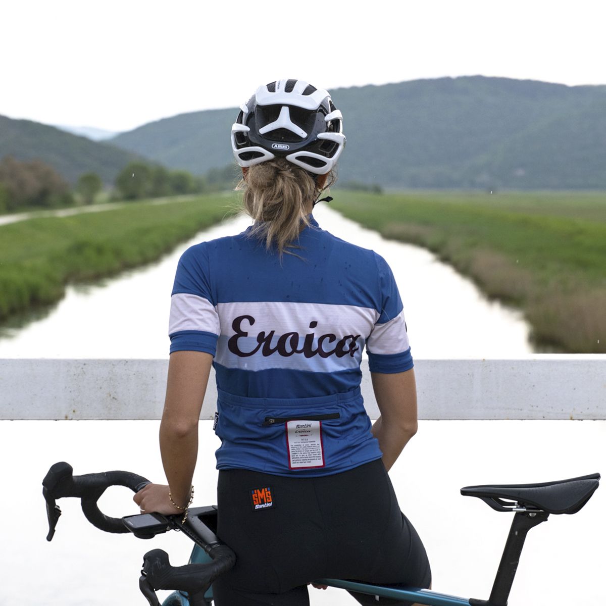 La maglia L’ della collezione Eroica celebra con stile l’essenza della parola L’Eroica, dove la lettera L’ diventa simbolo di passione per il ciclismo d’altri tempi. Progettata per offrire traspirabilità superiore e un comfort eccezionale, si adatta ai contorni del corpo senza comprimere.
