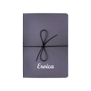 Set da due quaderni Eroica, uno in fibre alimentari, con copertina e pagine in FSC (dim.14,8×21 cm), l’altro con laccetto cerato e copertina in cuoio rigenerato (dim.14,8×21 cm ).