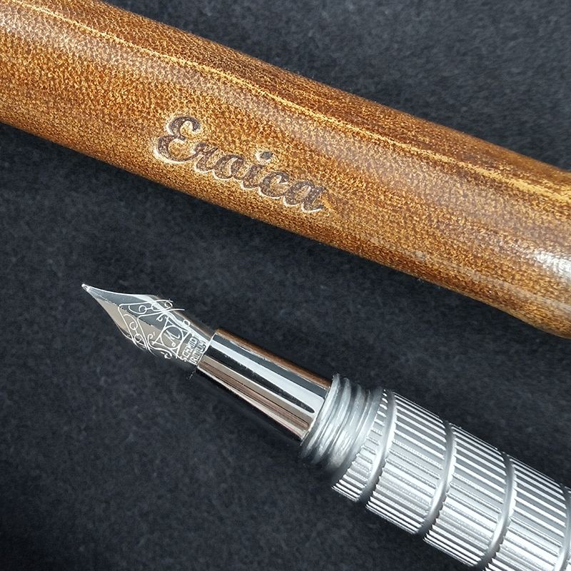 PENNA EROICA OFFICINA FRESA CON CUSTODIA IN PELLE – STILOGRAFICA CROMO SATINATO
